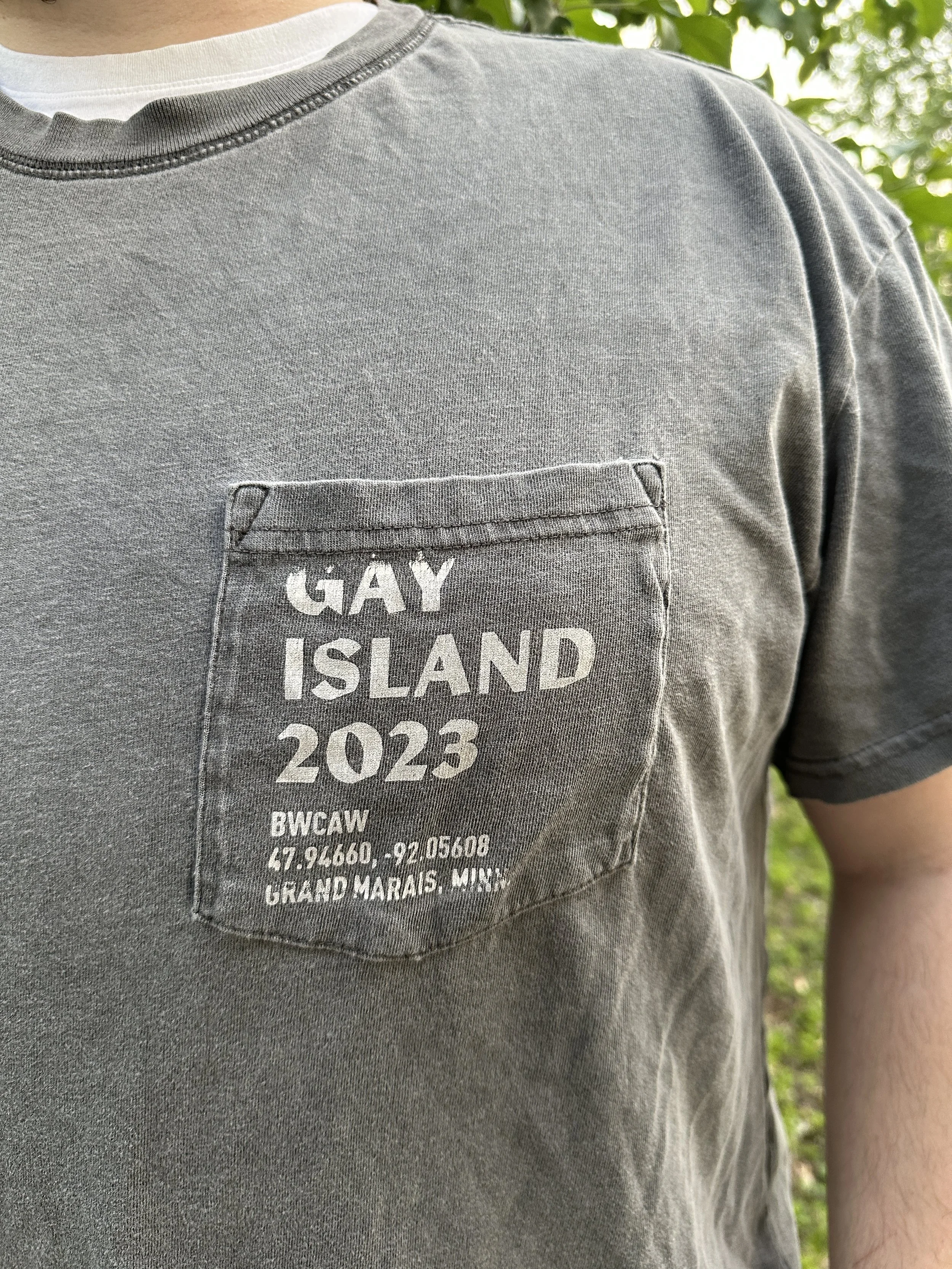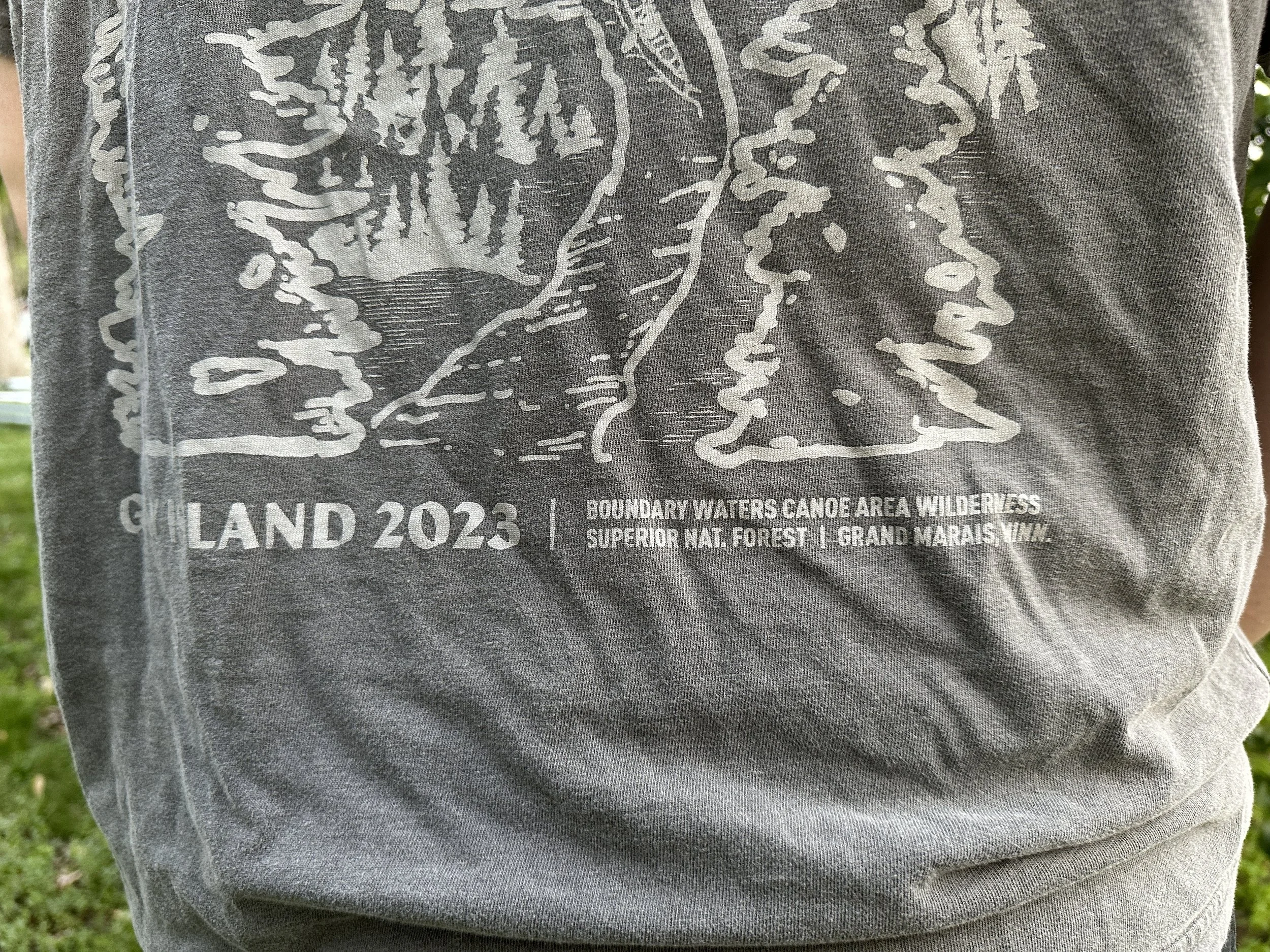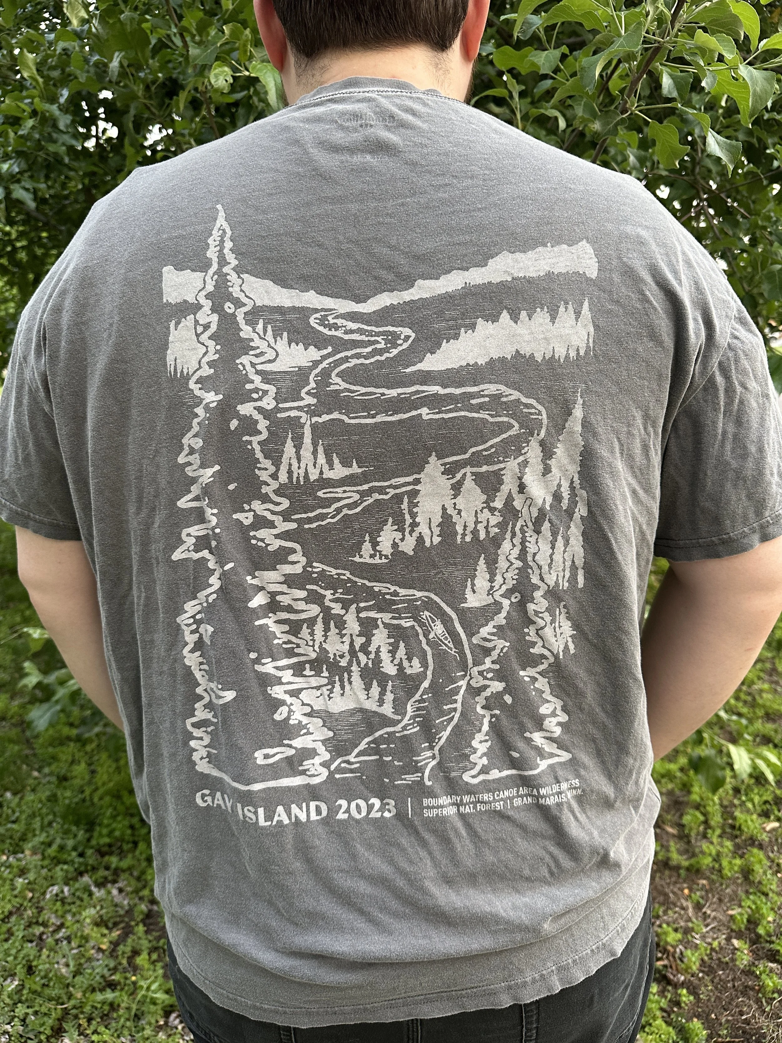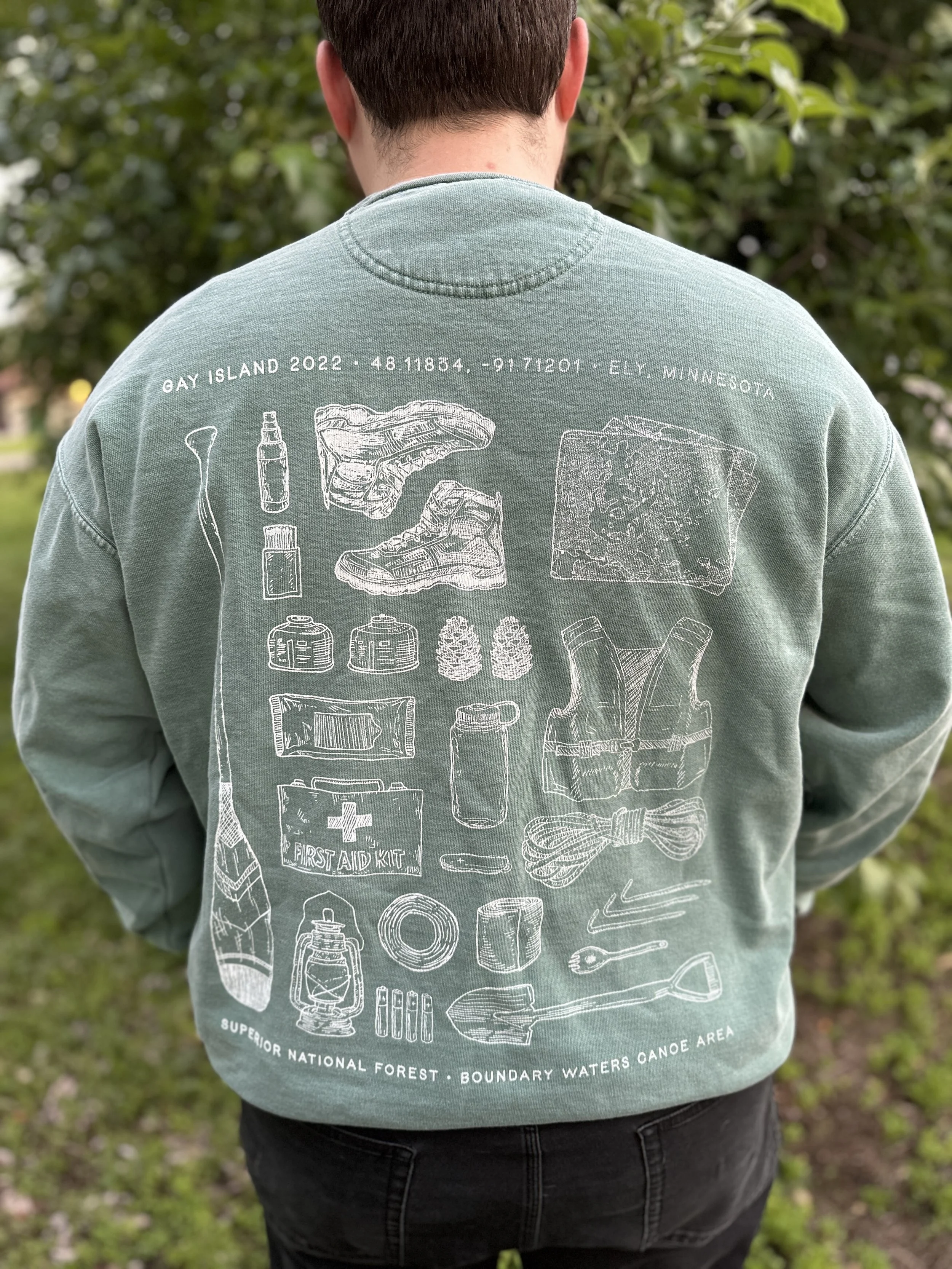 Every year, a group of friends and I go on a pilgrimage to the Boundary Waters Canoe Wildness Area and I make us a shirt or sweatshirt to commemorate our time together. We’re always going to Gay Island, though the destination and journey looks different every year.